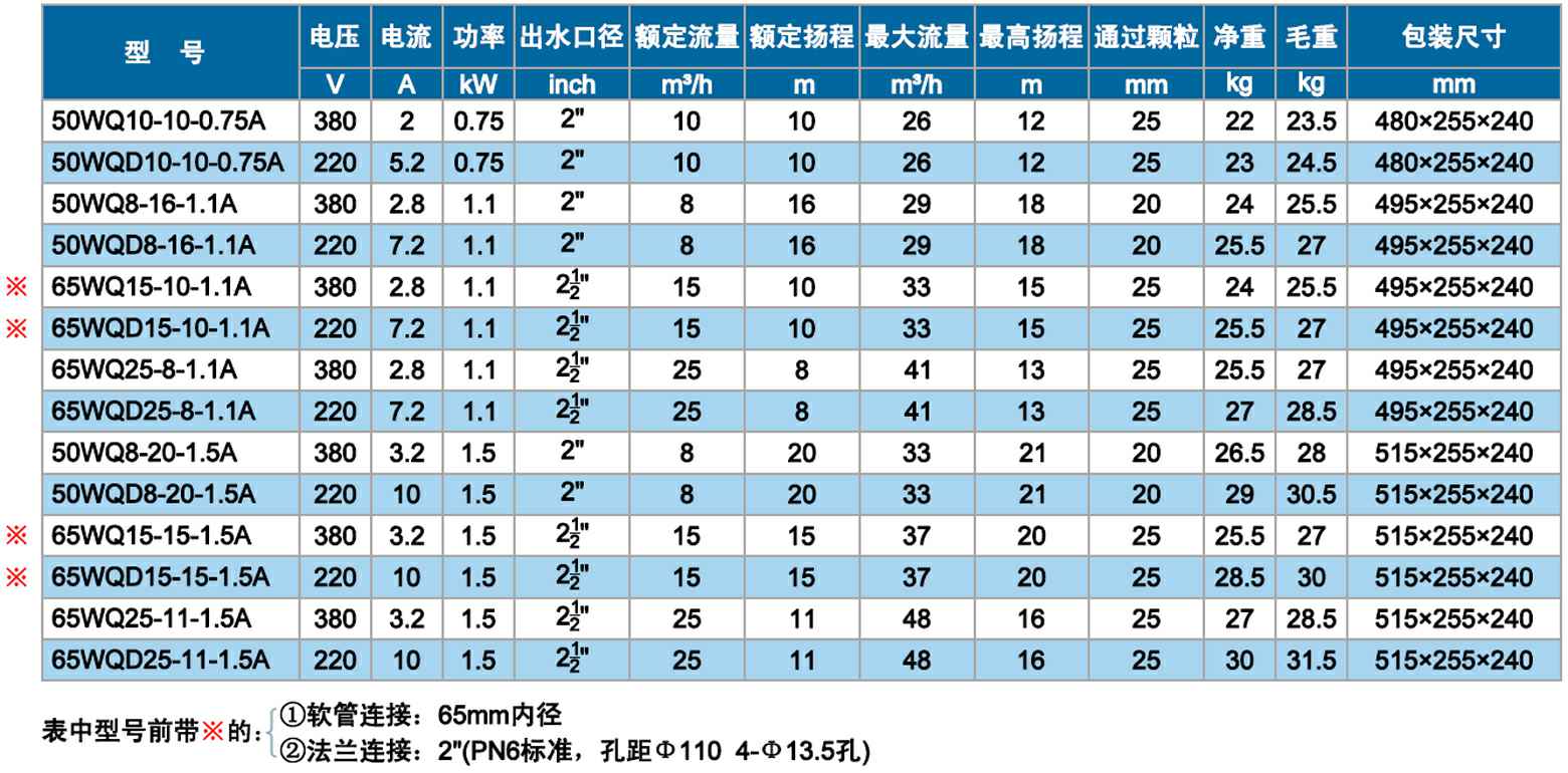 WQ双流道潜水排污泵 0.75~1.5kW A
